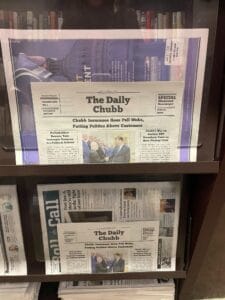 Consumers Research’s latest move includes placing fliers around the Hill with a mock newspaper, called The Daily Chubb, which targets the insurance giant Chubb over policies that Consumers Research calls “woke”.