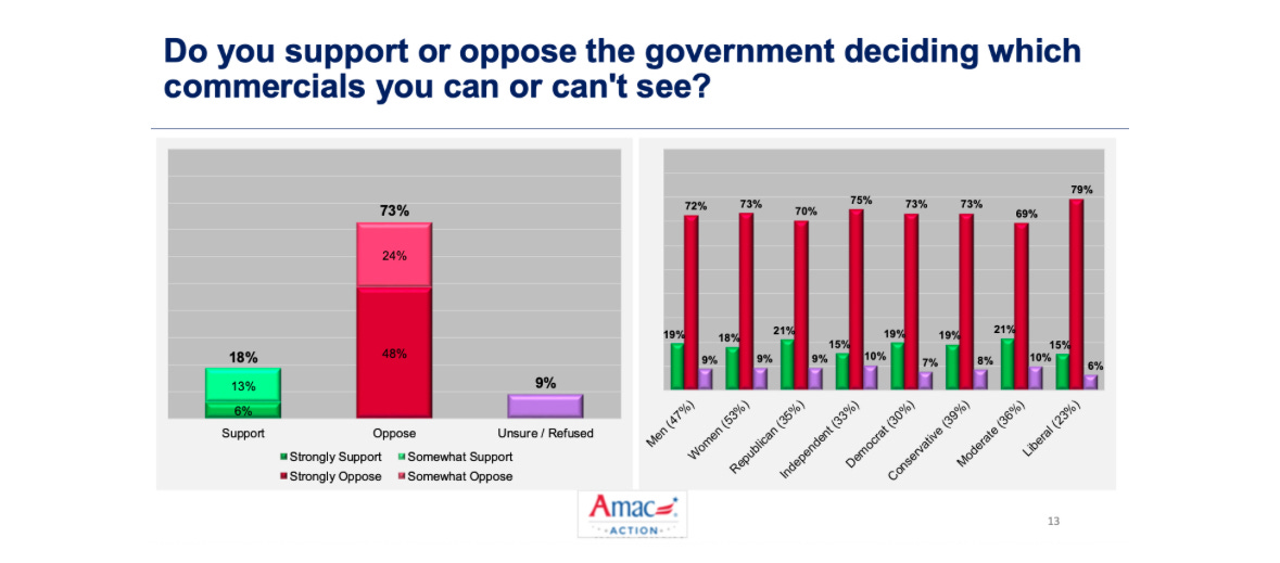 As some experts have raised concerns that heavy-handed regulation of pharmaceutical ads could open the door to a future Democrat administration cracking down on ads for gas-powered cars, air travel, or anything energy related, 67 percent of those polled were concerned that overregulation of commercials could be misused for other purposes in the future.