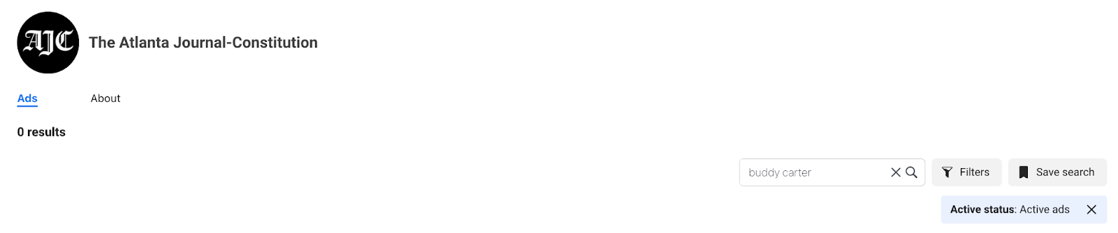 Both Reps. Buddy Carter (R., Ga.) and Mike Collins (R., Ga.) are sitting Republican officeholders who are challenging Ossoff in next year’s election. The AJC is currently running zero ads featuring either of their names, a search by the Reporter revealed.