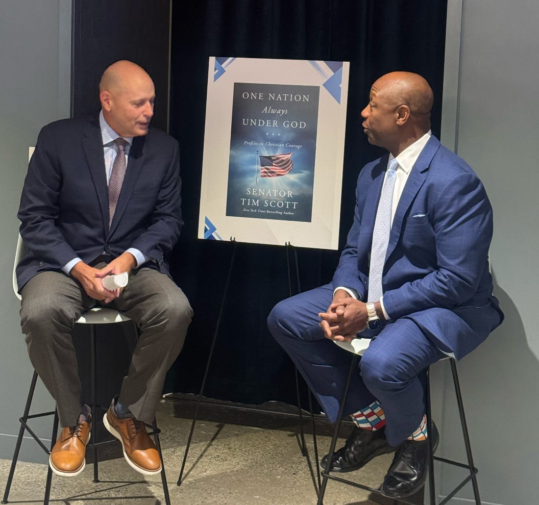 New York Times bestselling author Sen. Tim Scott (R., S.C.), who chairs both the Senate’s Banking Committee and the National Republican Senatorial Committee (NRSC), joined the Washington Reporter and the Electronic Payments Coalition (EPC) on Wednesday night to discuss his latest book, the importance of faith in American politics, the lessons he learned from running for president, and more.