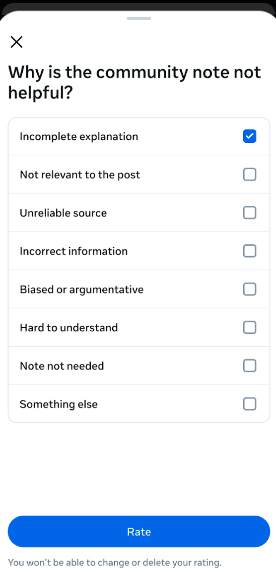 “We won’t be reinventing the wheel,” Meta wrote in its post. “Initially, we will use X’s open-source algorithm as the basis of our rating system. This will allow us to build on what X has created and improve it for our own platforms over time.”