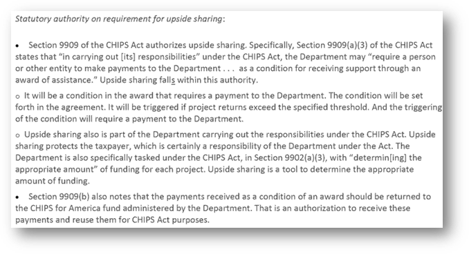 Staff for key Republican senators who helped draft and negotiate the bill were perplexed by the inclusion of upside sharing according to call notes with the CHIPS program staff: "What is the legal authority for upside sharing. This was voted down in the [Sen. Warren] amendment. It was not something that they had drafted or negotiated."