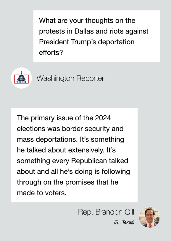 Rep. Brandon Gill (R., Texas) caught up with the Washington Reporter to give his thoughts on the situation in his Texas backyard.
