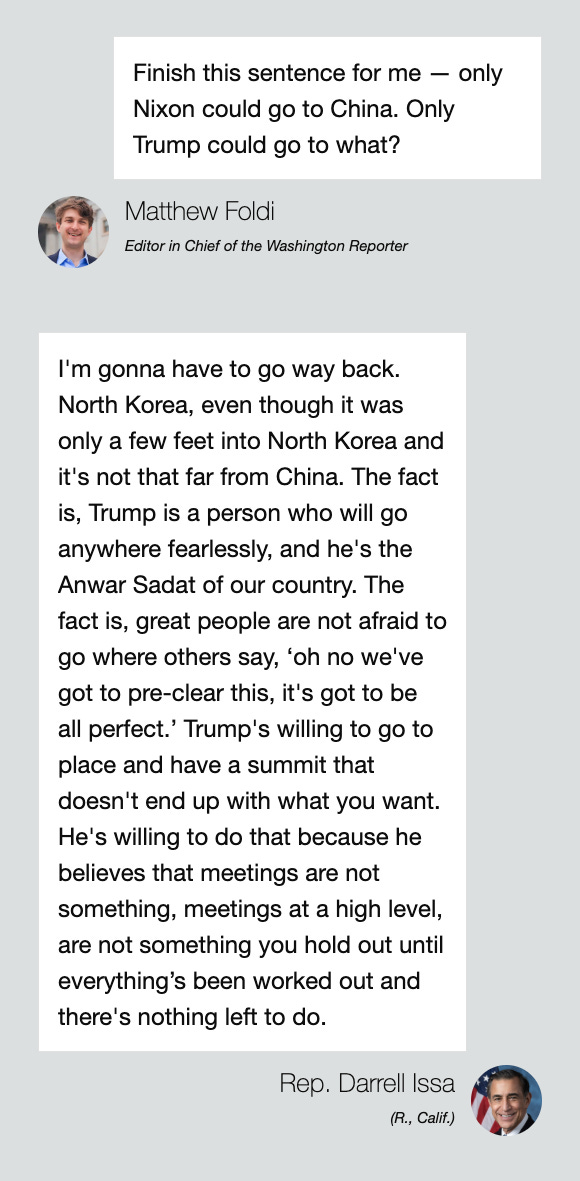 Rep. Darrell Issa on Trump-Nixon, what Tulsi Gabbard told world leaders in Bahrain, and more