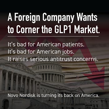 Novo Nordisk is aiming to corner the GLP1 market. A foreign company wants to send jobs and profits overseas. And it could RAISE COSTS for American patients.