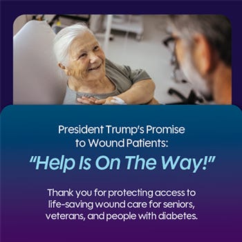 The Trump administration is considering reversing its position and resurrecting a flawed Biden-era policy that would slash physician reimbursement by 90% and could lead to 431,429 unnecessary amputations. Millions of Americans rely on physicians for advanced wound treatments. President Trump must trust his instincts and help doctors, nurses, and patients by preserving access to essential wound care. Learn more.