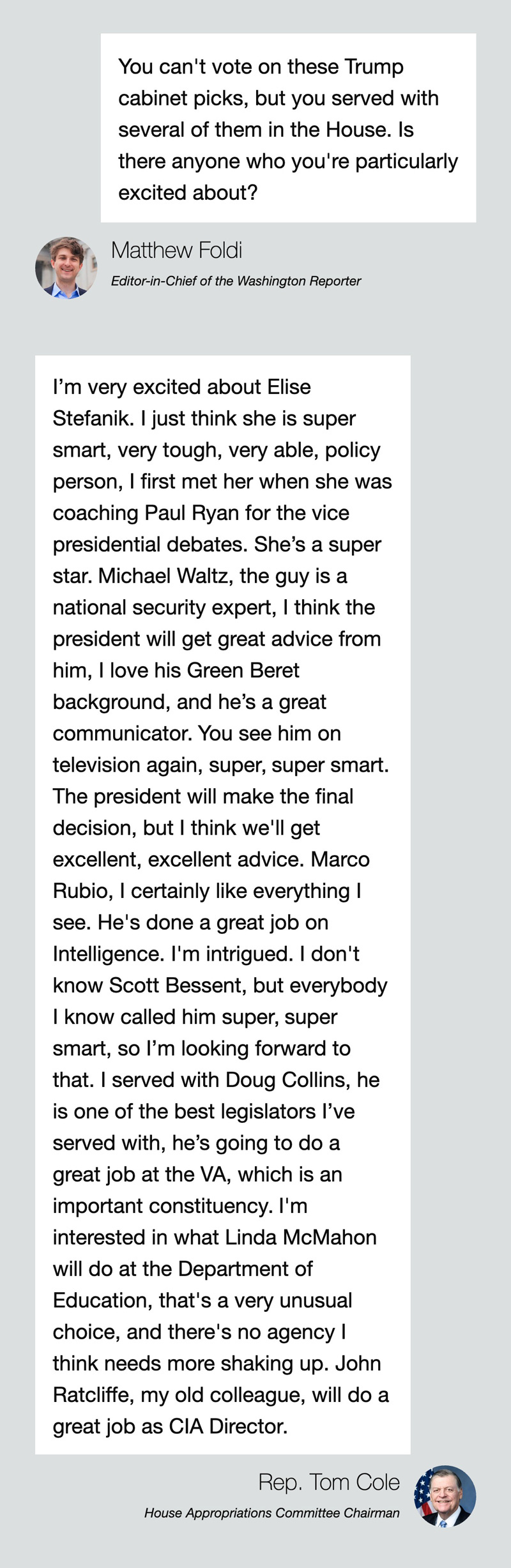 Interview: Rep. Tom Cole on the Continuing Resolution, Trump cabinet picks, and how to save college football